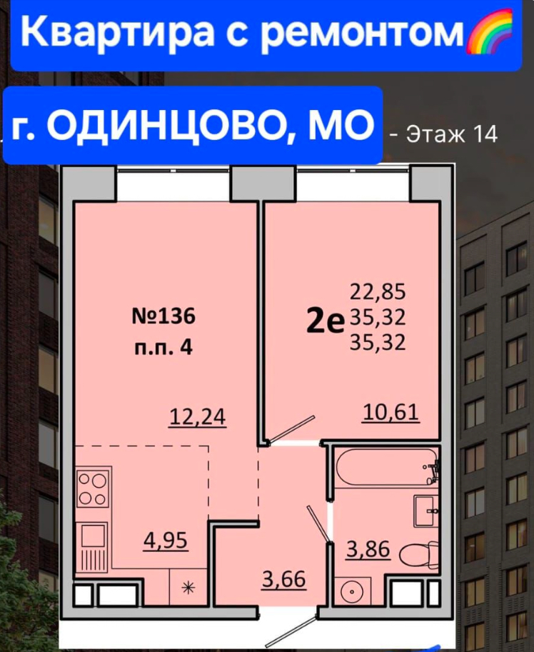 01.09.2025 Продам, 35,8 кв.м, 1-комнатная