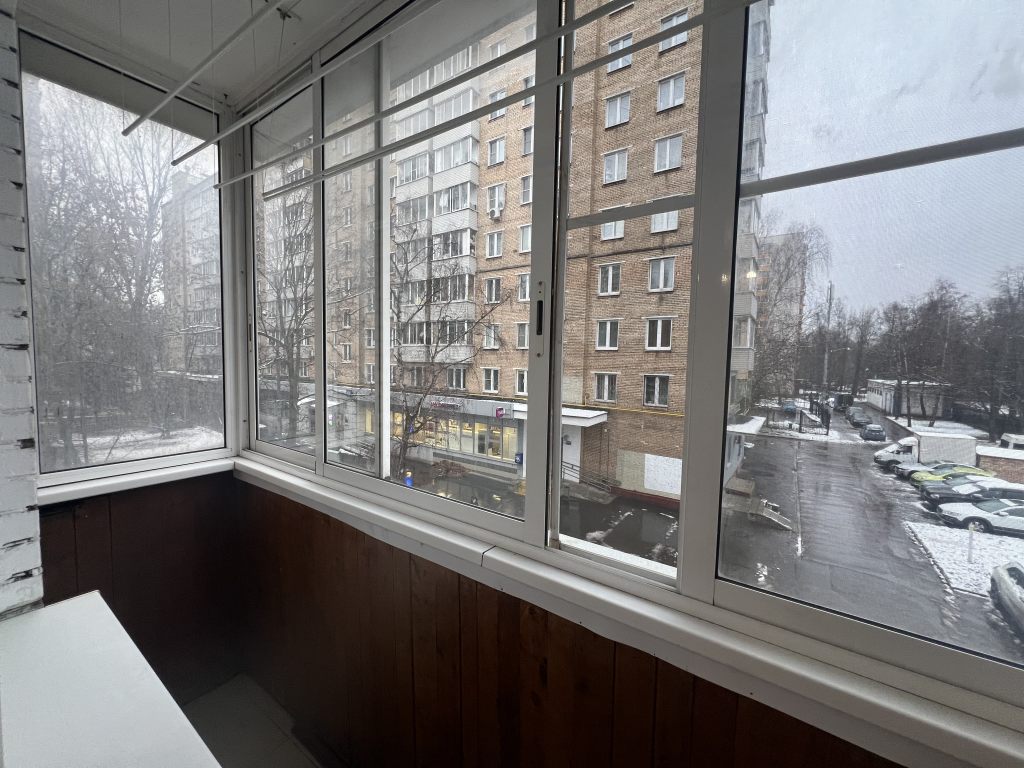Окна квартиры выходят на зеленый и тихий двор. Застекленный балкон.