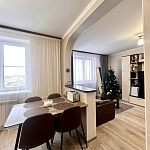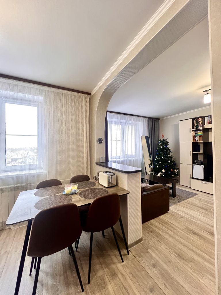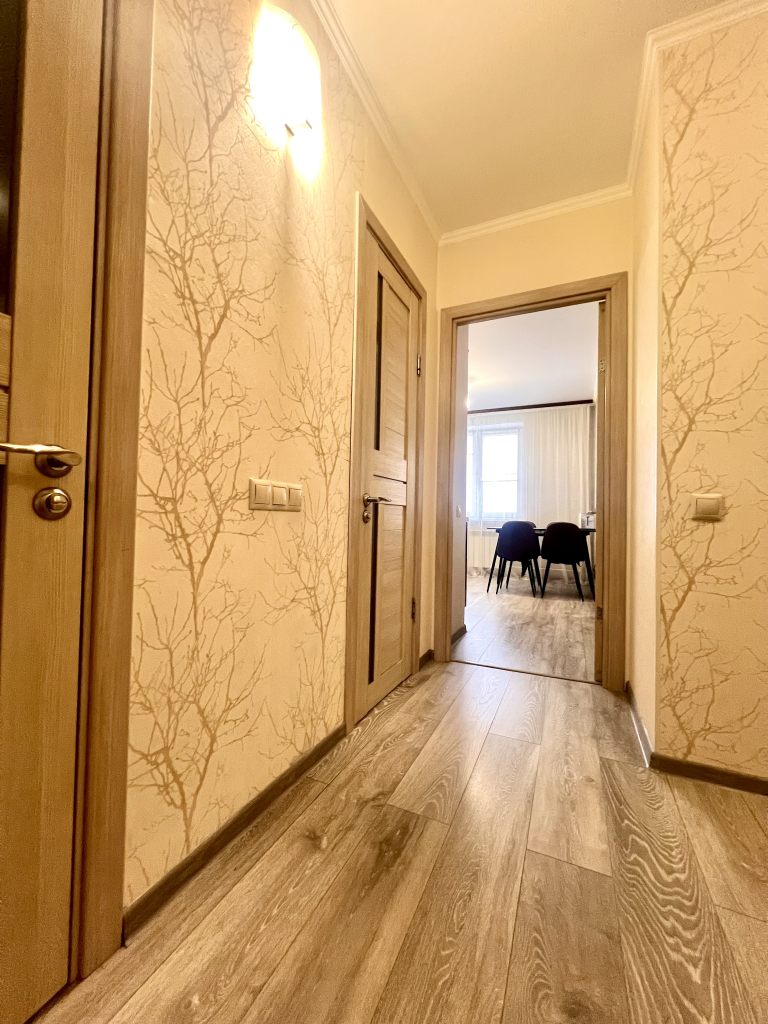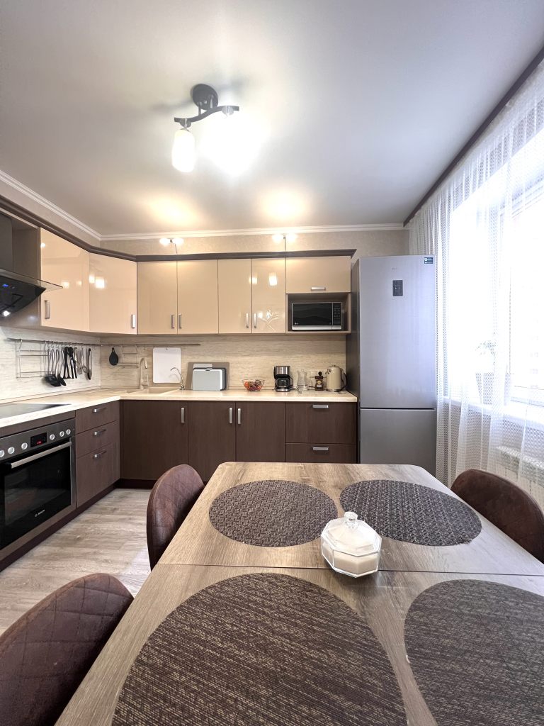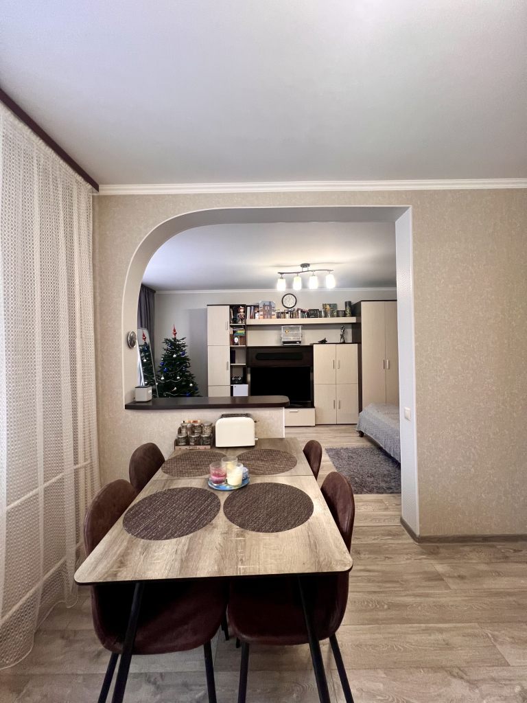 Качественная проводка, пол стяжка, выровнены стены, потолки, напольное покрытие - кухня, комнаты ламинат, санузел плитка. Установлены новые радиаторы. Межкомнатные двери в одном стиле.