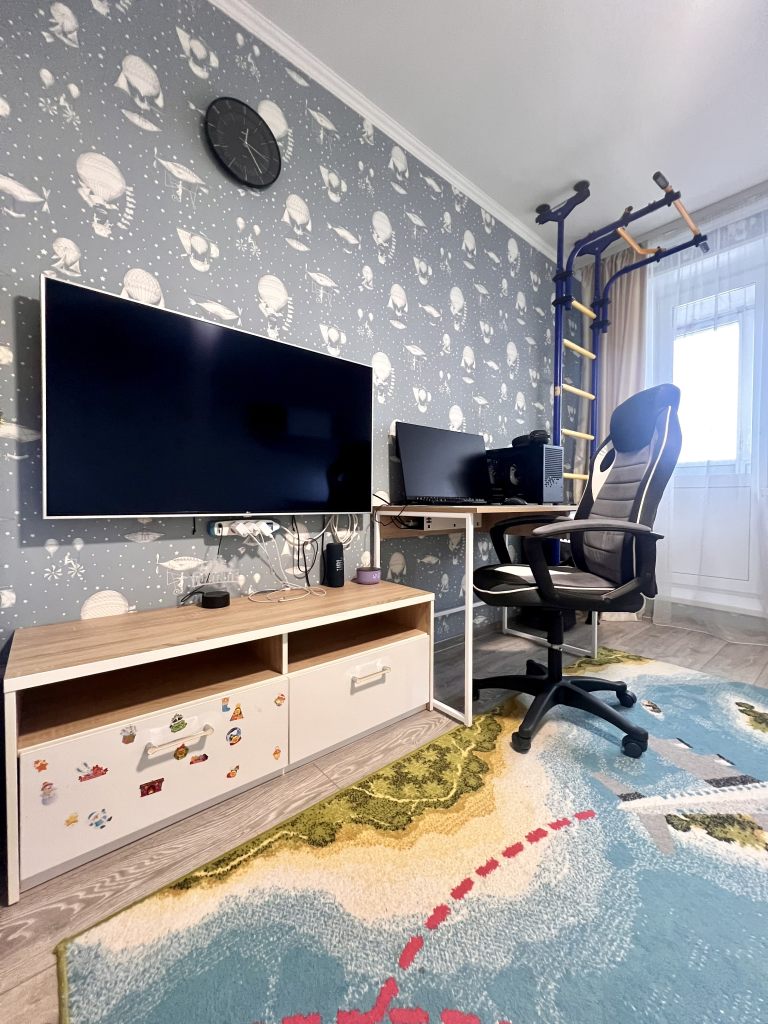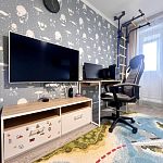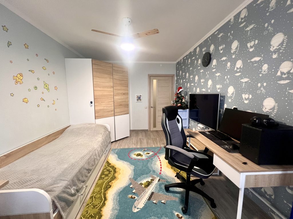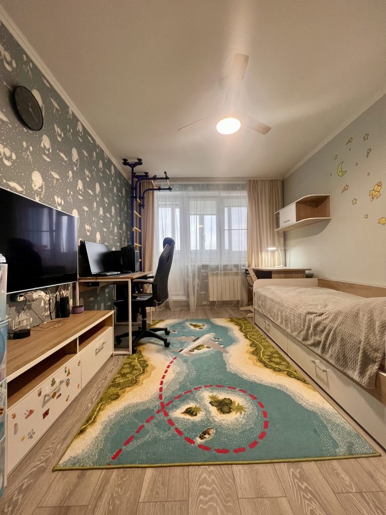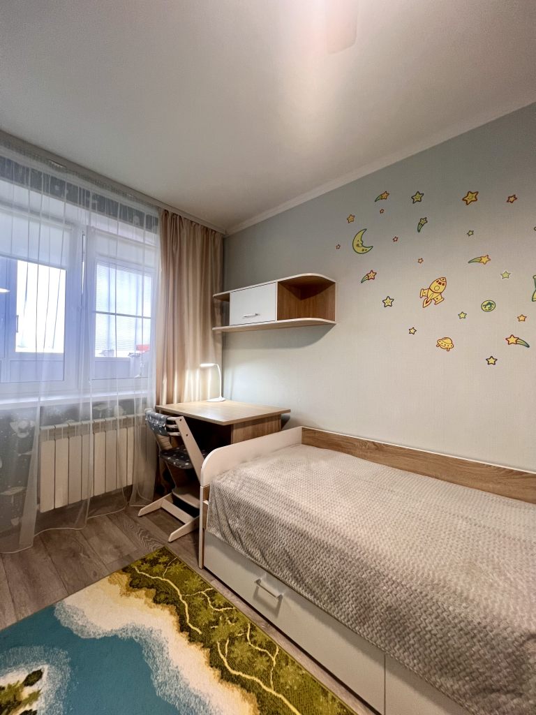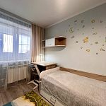 Две комнаты - детская 14 м 2 с выходом на просторный балкон и спальная комната 18 м 2, стильная кухня 11,5 м 2 которая предоставляет достаточно пространства для размещения семьи и гостей. Окна на две стороны во двор и на улицу. Санузел раздельный.