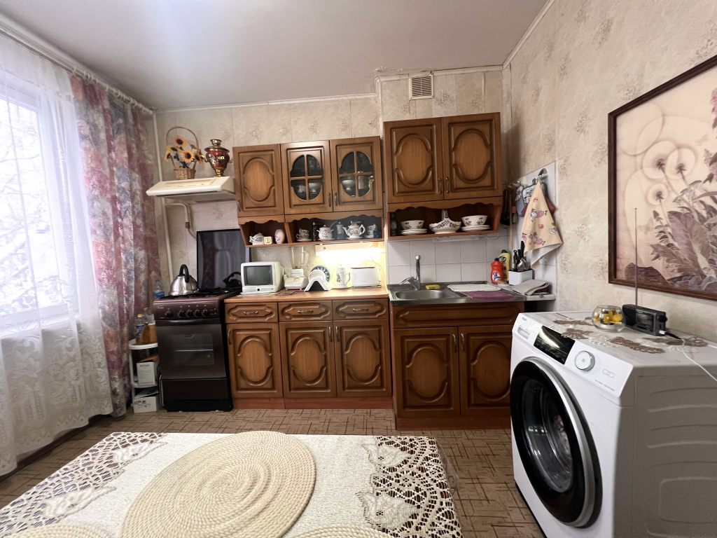 Две изолированные комнаты: 11,2 м2 с выходом на мини балкон, и 16,3 м 2, просторная кухня правильной формы. Окна на две стороны во двор и на улицу. Санузел раздельный. Квартира не угловая.