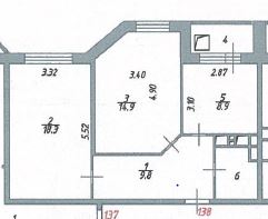 Продам, 58,4 кв.м, 2-комнатная