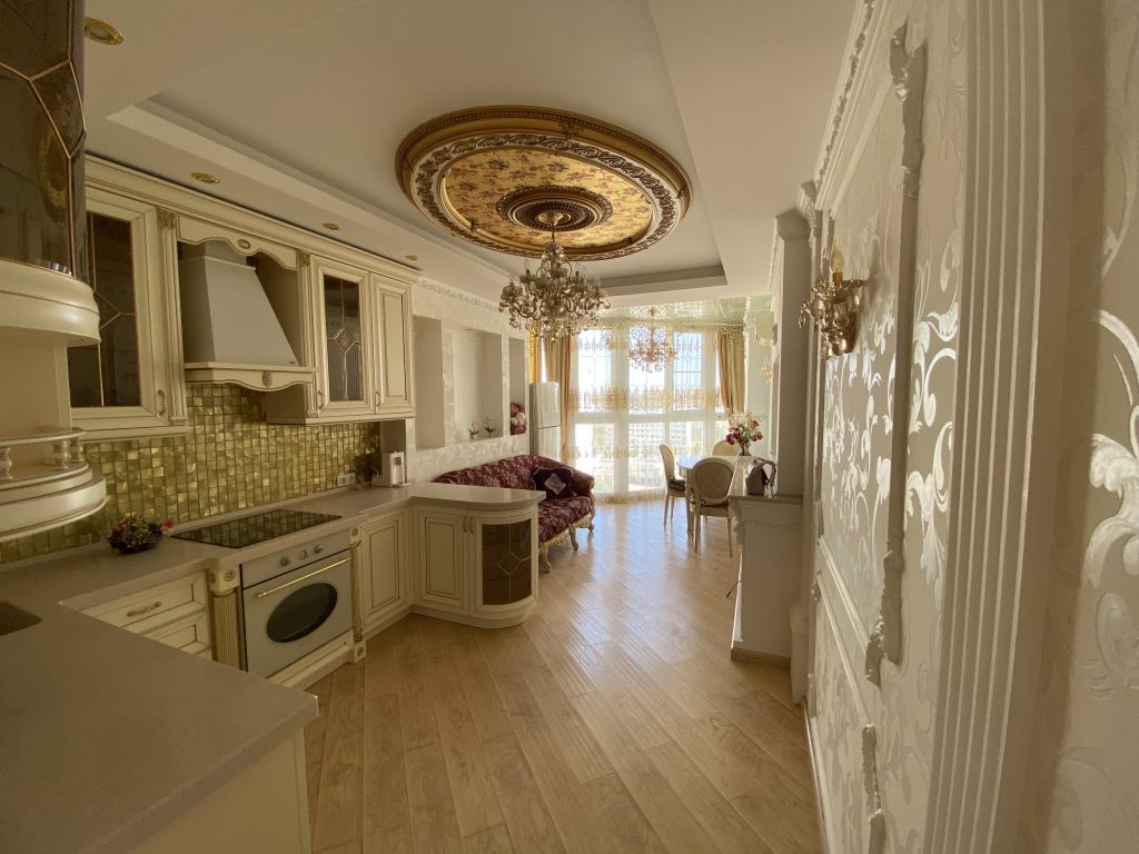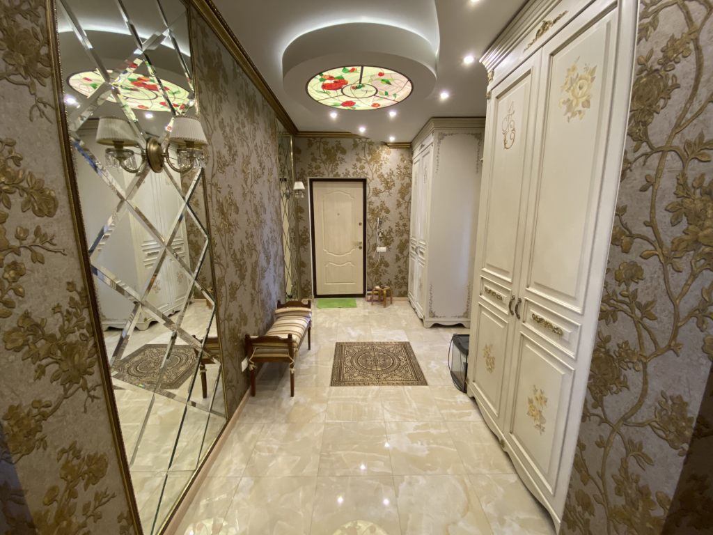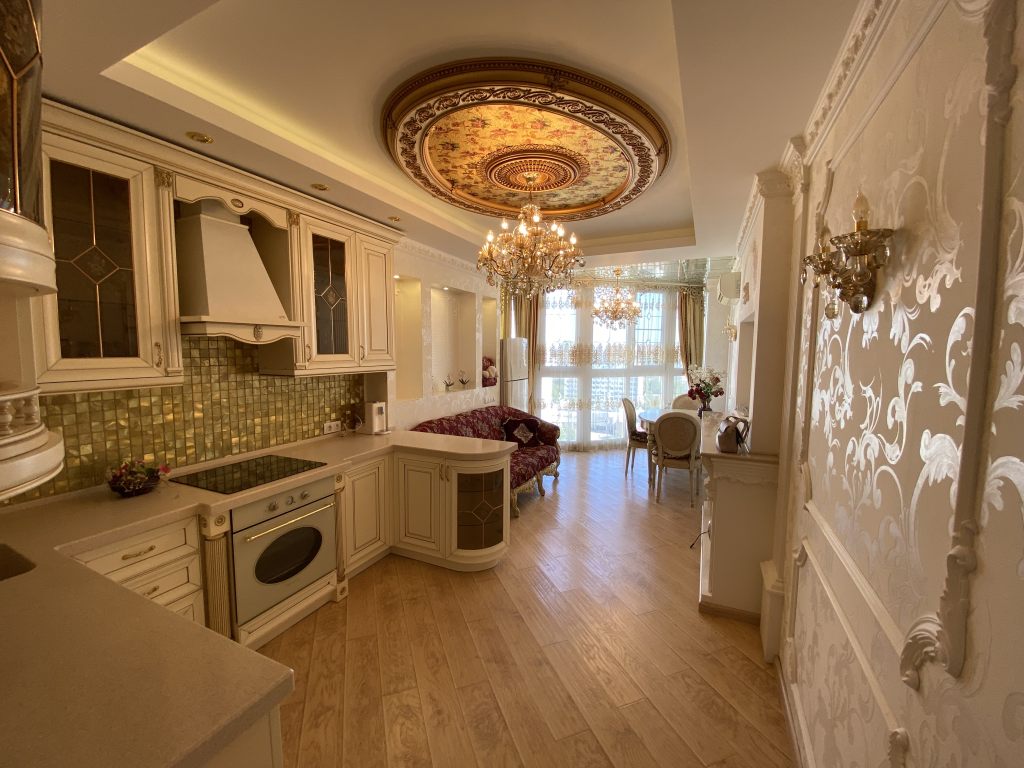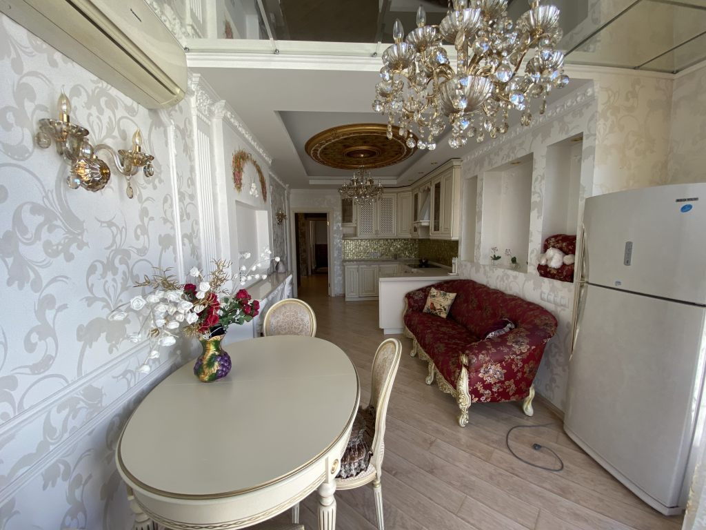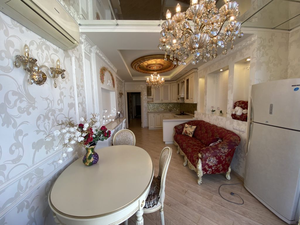 Предлагается к продаже эксклюзивная 2 к.квартира с панорамным остеклением и дизайнерским ремонтом в одном из лучших домов города. Площадь по Росреестру 71,9 кв.м., фактическая около 80 кв.м. Очень светлая и просторная квартира с функциональной зональной планировкой. Просторная прихожая-холл с зонами хранения и зеркалами, огромная кухня-гостинная, с выделенными зонами: оборудованная всем необходимым кухня, зона отдыха и обеденная зона с панорамным остеклением; большой совмещенный санузел, детская комната разделена на рабочую комнату и комнату отдыха, взрослая спальня с выходом в рабочий кабинет, оборудованный на втором балконе с панорамным остеклением. Дизайн квартиры выполнен в неоклассическом стиле с элементами барокко, сочетающие в себе парадность с чувством меры и аккуратную элегантность. Квартира для тех, кто ценит добротные вне времени и моды вещи, не отвергая новшества прогресса. При ремонте использовались качественные, дорогостоящие материалы, ручная роспись, мебель и техника ведущих европейских брендов, фешенебельные люстры и бра, поэтому по прошествии многих лет, квартира выглядит как новая, за исключением некоторых деталей, которые нуждаются в замене, по причине того, что в квартире никто не живет уже несколько лет. В квартире остается всё что вы видите на фотографиях, за исключением рабочего стола из кабинета. 1 взрослый собственник. Полная стоимость в договоре. Свободная продажа. Без торга! Звоните!