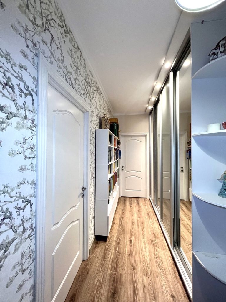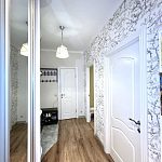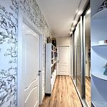 Вас встретит просторный коридор, где предусмотрен вместительный встроенный шкаф-купе. Здесь с комфортом разместится вся верхняя и межсезонная одежда всей семьи — порядок и свобода в доме начинаются с порога.