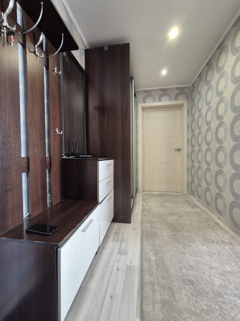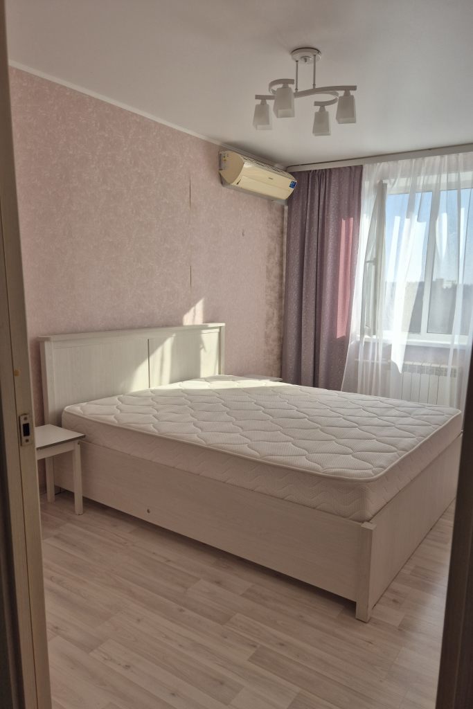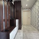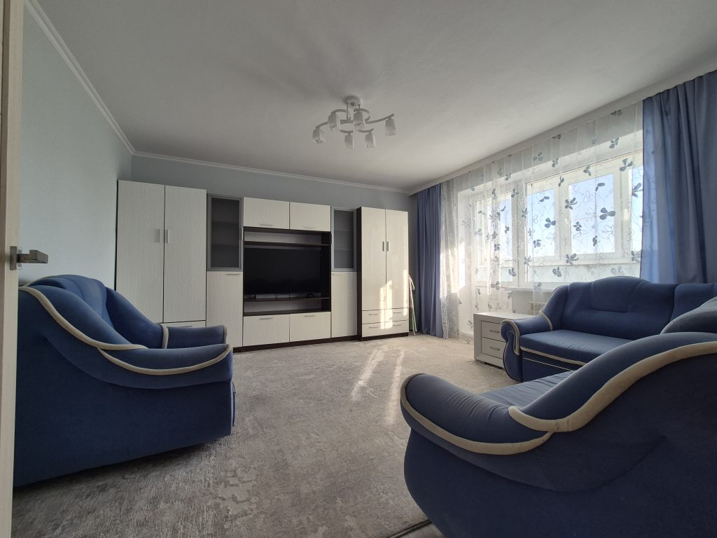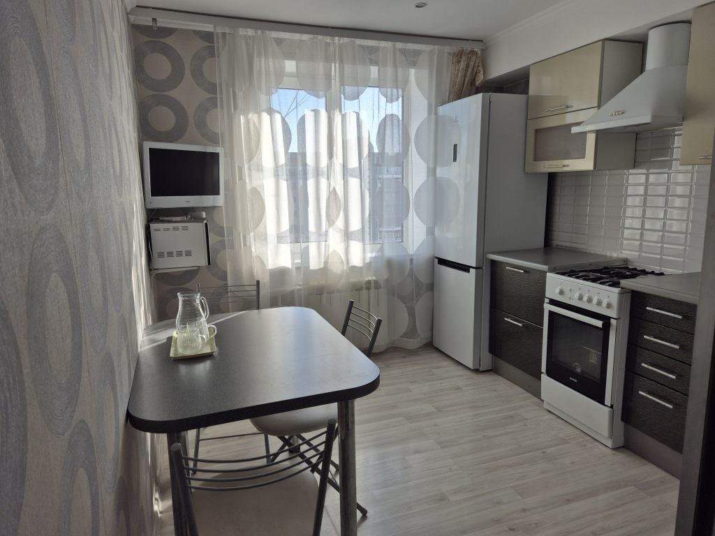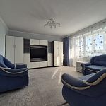 Квартира полностью укомплектована: встроенная кухня (СВЧ, духовка, плита, вытяжка, холодильник), стиральная машина, большой ТВ, мал.на кухне, двуспальная кровать 160×200 с матрасом, раскладной диван и кресло)