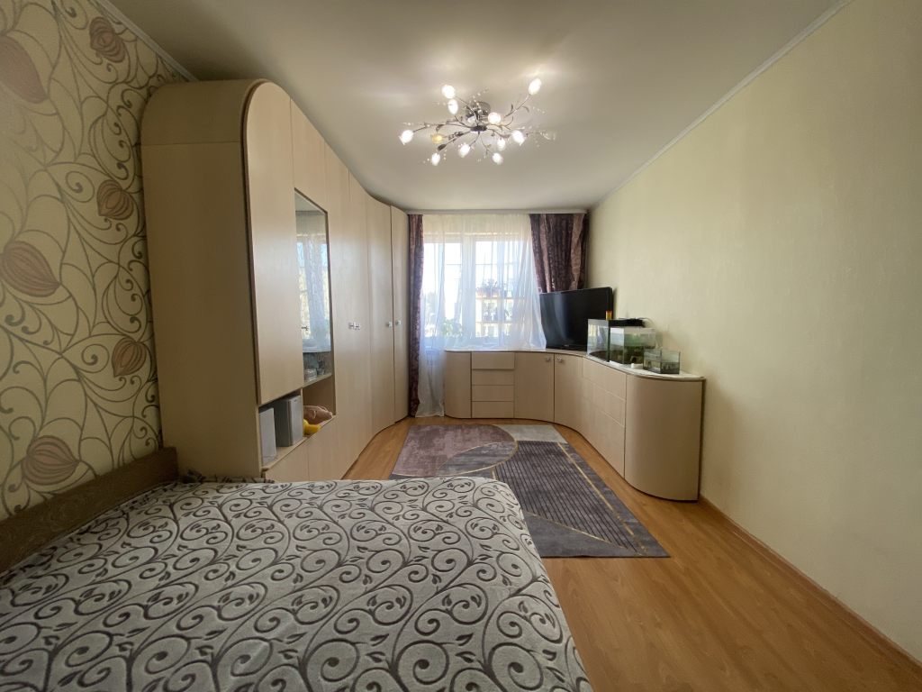 4 этаж. Квартира распашонка, просторная и светлая. Планировка: Прихожая-коридор, комната с выходом на балкон, коридор, кухня, туалет, ванная, комната.