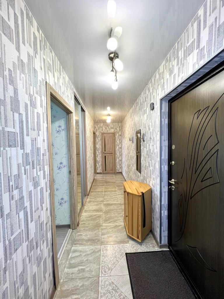 В квартире сделан аккуратный ремонт: в комнатах — тёплый ламинат, в коридоре и на кухне — плитка молочно-бежевого оттенка. Санузел раздельный. Все комнаты правильной формы, что позволяет грамотно и практично расставить мебель без потери полезного пространства.