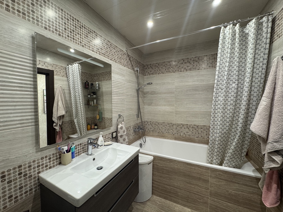 В квартире выполнена шумоизоляция, натяжные потолки, теплый пол.