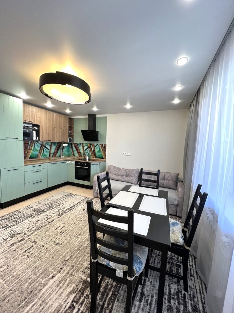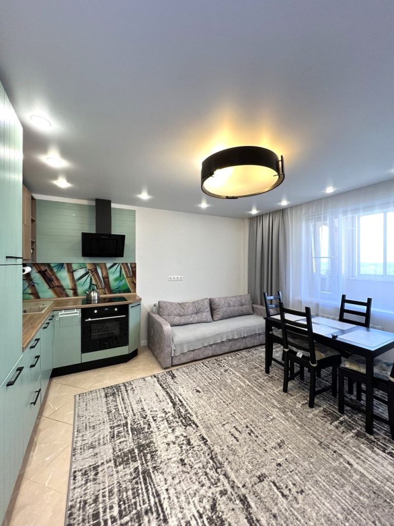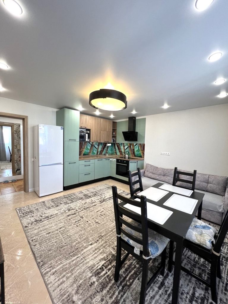 Просторная кухня-гостиная (18,6 м²) станет сердцем вашего дома. Здесь уже есть вся необходимая техника, включая посудомоечную машину, которая позаботится о чистоте после семейных обедов и дружеских ужинов. А чтобы летний зной ничто не омрачало вашего комфорта, в гостиной уже установлена современная сплит-система (кондиционер), которая подарит приятную прохладу в любую жару. Выход на балкон наполняет пространство светом и воздухом, а из окон открывается вид на уютный город.