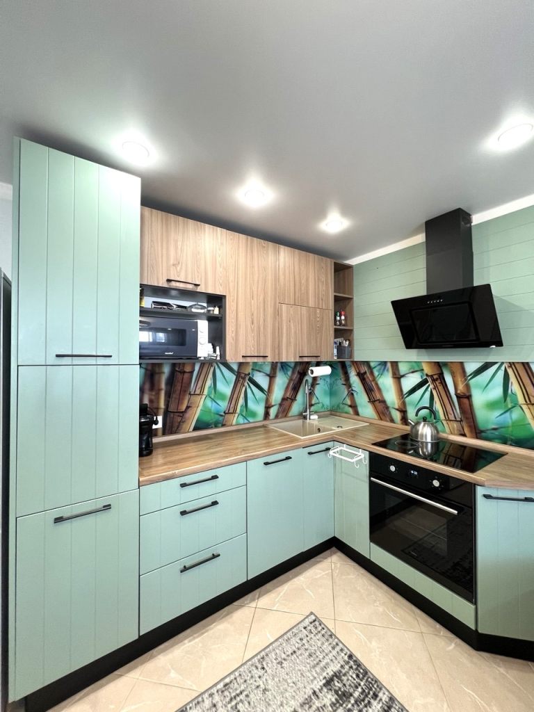 • Техника на кухне: для вашего удобства есть посудомоечная машина, встроенный духовой шкаф, встроенная электроплита и вытяжка.