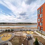 Дом комфорт-класса, панорамные окна. Позади дома Большой Федосьинский пруд (планируется организация пляжной зоны), за прудом лесопарк. Внутри дома во дворе: зона отдыха с видом на пруд, детская площадка, Перед домом детский сад и школа и все, что необходимо для комфортной жизни. На территории ЖК: торговый центр, множество магазинов, развивающие детские центры, пункты выдачи, кафе, салоны красоты и т.д.