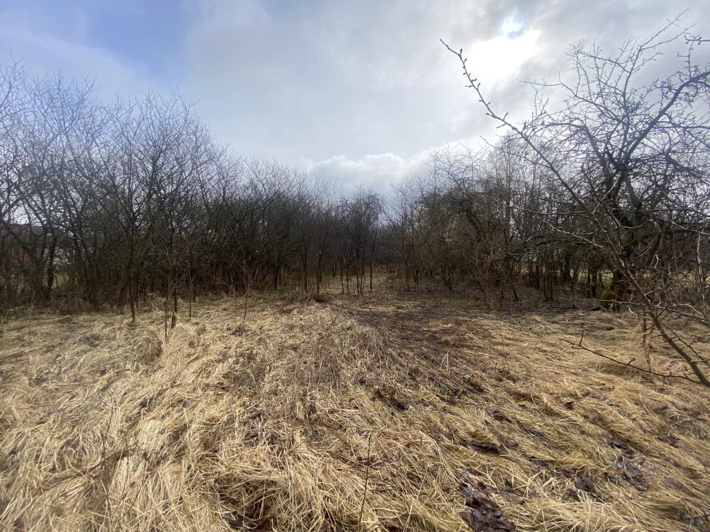 Ровный, сухой, яблоневый сад (деревья старенькие, но плодоносящие).
