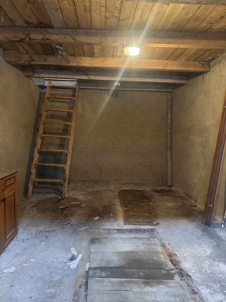 Крыша монолит, перекрытия деревянные, освещение имеется.
