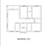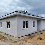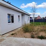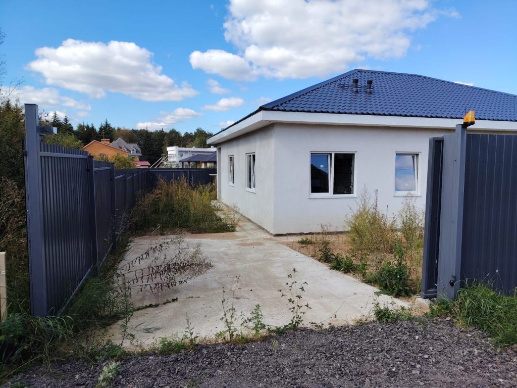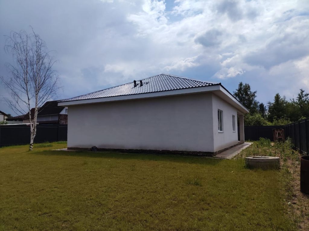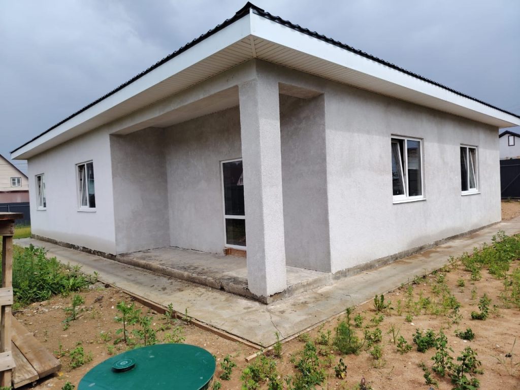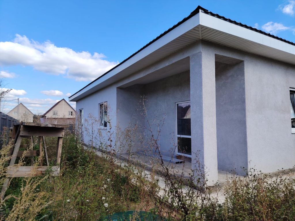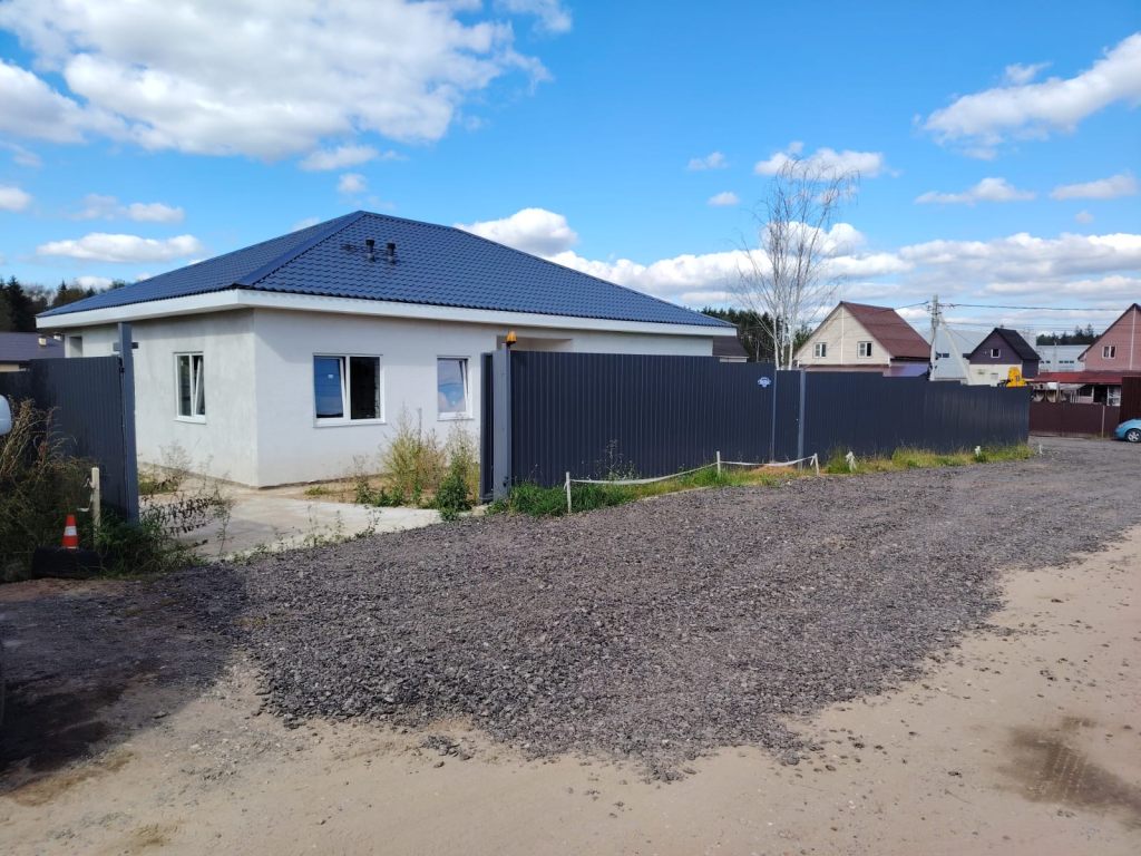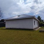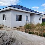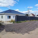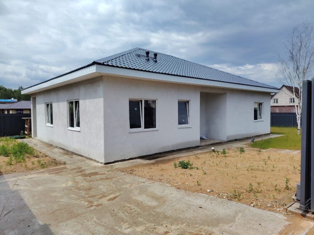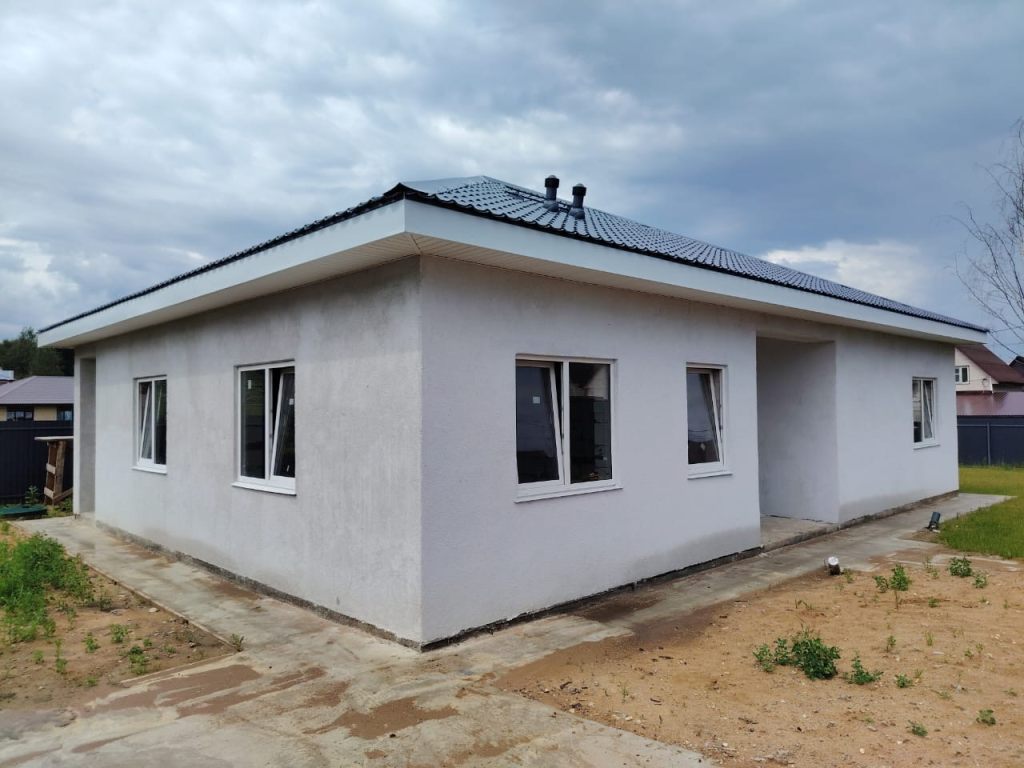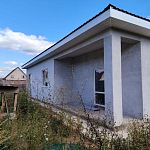Дом одноэтажный 148,6 квадратных метров. Фундамент - монолитная армированная плита на ростверке и на буронабивных сваях с заглублением на 3 метра, отмостка и веранда литые, гидроизоляция. Стены газоблок, наружные 375 мм, внутренние (межкомнатные) 200 мм. Чердачное перекрытие деревянные балки с теплоизоляцией (200 мм). Кровля четырехскатная, неэксплуатируемая, покрытие металлочерепица 0,5 мм. Окна - двухкамерные стеклопакеты Rehao,