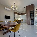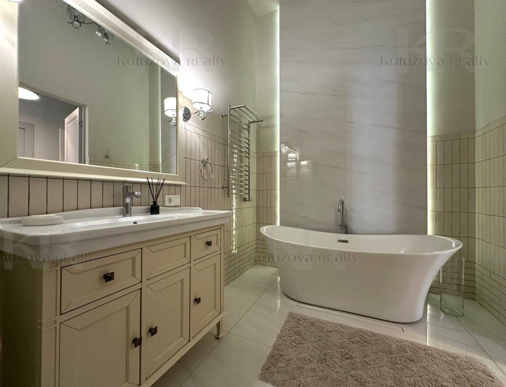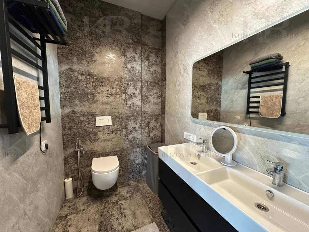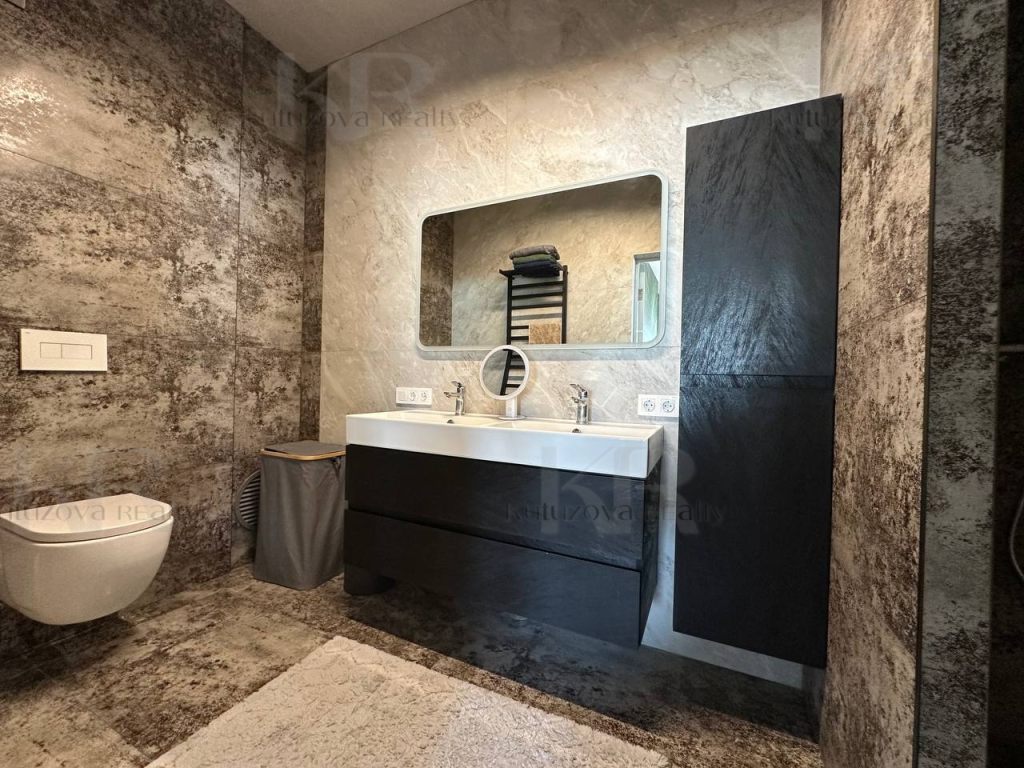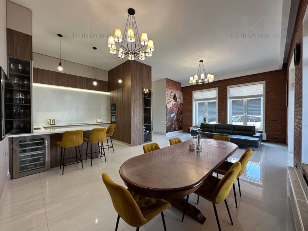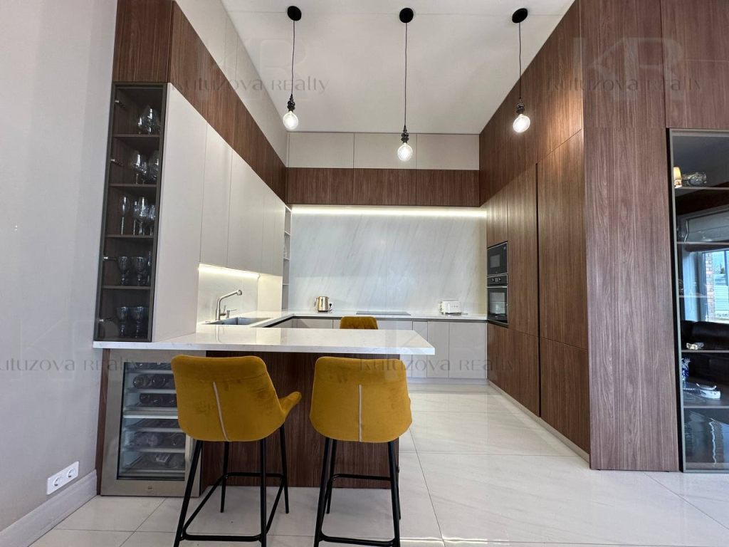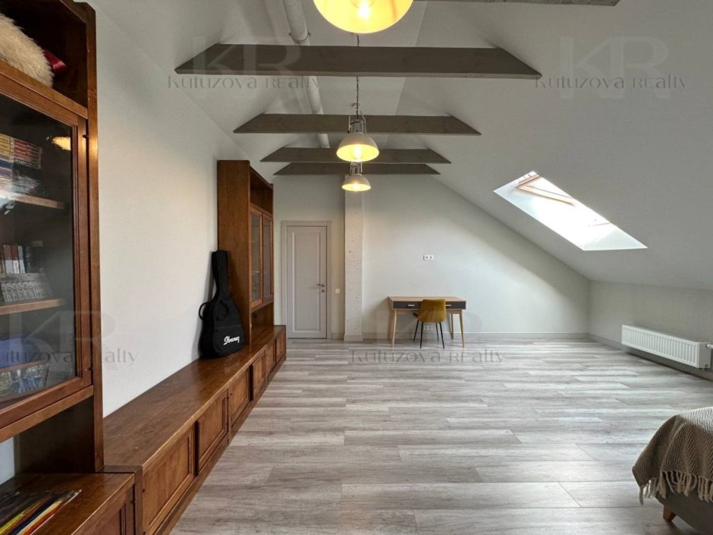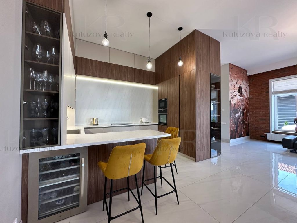 1 этаж: Просторная прихожая с гардеробом, гостевая спальня, кабинет и кухня-гостиная (2 холодильника: Libherr и Haier, винный шкаф, дизайнерская кухня и т.д.) Раздельный санузел.