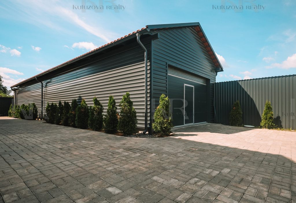 Въезд под автоматические ворота. Парковка на собственной территории: 6 машино/мест, оборудован гараж: + 6 крытых машино/мест. (гараж может быть легко переоборудован в склад , рабочую полноценную зону для всевозможных видов бизнеса)
