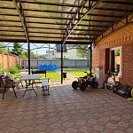 1 этаж: кухонная зона, кладовая, бывший гараж (сейчас — тёплое жилое пространство с отдельным входом), автоматические въездные ворота.
