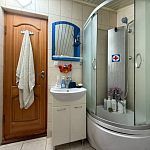 Особое внимание — встроенной системе водоотведения: она закладывалась под нужды гаража (в том числе для мытья автомобилей), а в текущей жилой конфигурации делает уборку лёгкой и практичной — вода уходит по уклону в слив.