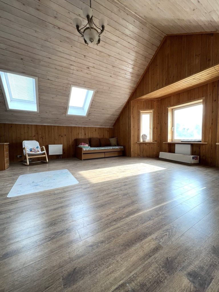 • Второй этаж — пространство для отдыха: Две просторные спальные комнаты, каждая из которых является оазисом спокойствия. Большие окна, наполняющие комнаты светом, и виды на зеленый участок способствуют полному релаксу.