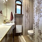• Первый этаж — сердце дома: Здесь вас встречает невероятно уютная и светлая гостиная с настоящим камином — идеальное место для вечеров в кругу семьи, где пламя огня создает неповторимую атмосферу тепла. Эргономичная и стильная кухня, оснащенная всей необходимой техникой. Отдельная гордость — просторный кабинет, где царит атмосфера для плодотворной работы и уединения. Также на этаже расположен элегантный санузел.