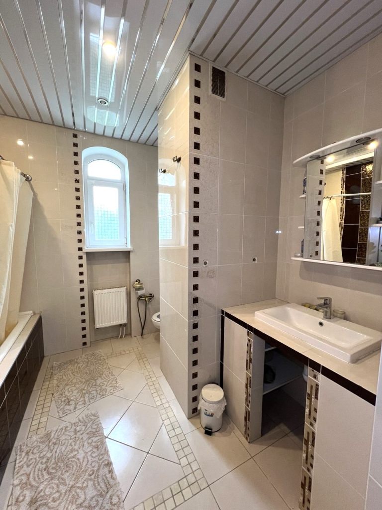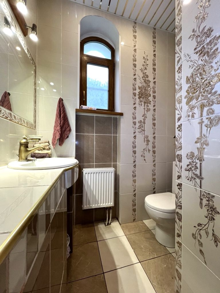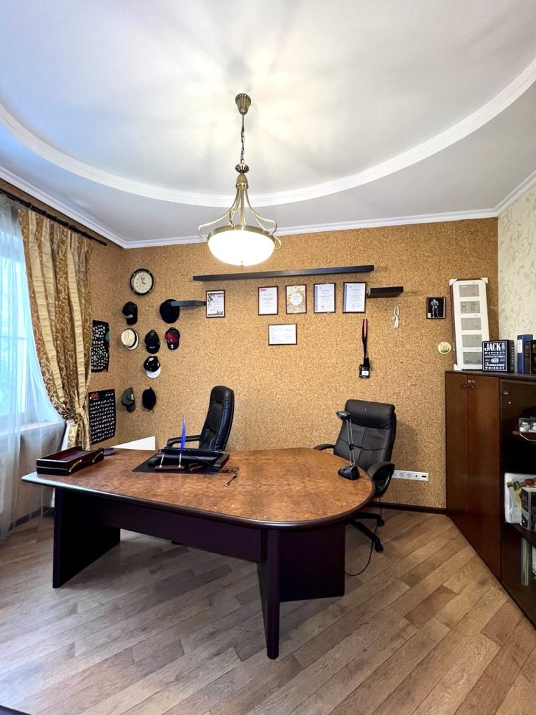 • Первый этаж — сердце дома: Здесь вас встречает невероятно уютная и светлая гостиная с настоящим камином — идеальное место для вечеров в кругу семьи, где пламя огня создает неповторимую атмосферу тепла. Эргономичная и стильная кухня, оснащенная всей необходимой техникой. Отдельная гордость — просторный кабинет, где царит атмосфера для плодотворной работы и уединения. Также на этаже расположен элегантный санузел.