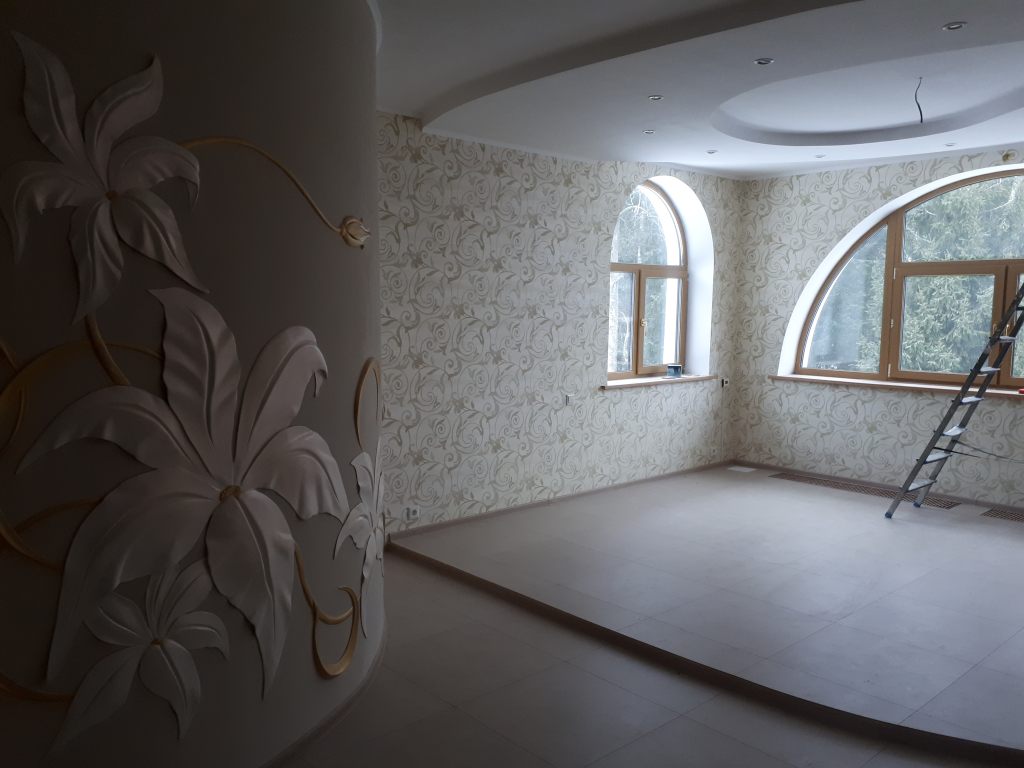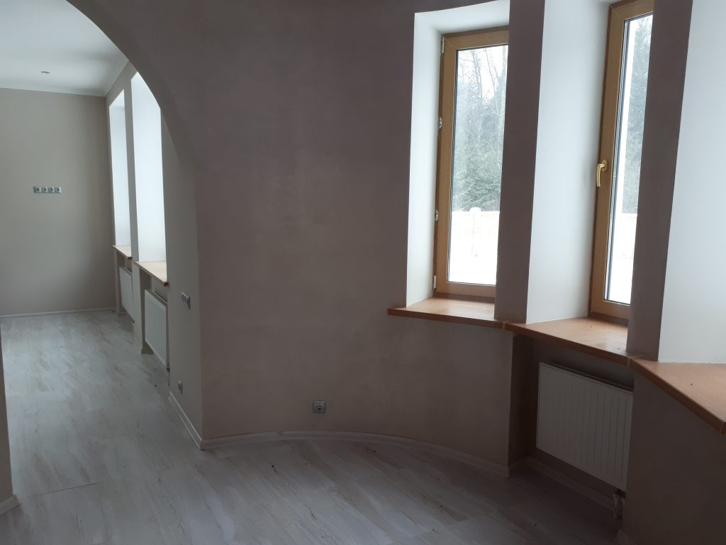 Дом 600 кв.м.(строили для себя) из кирпича и нарощенного бетона, снаружи штукатурка, ширина стен около 80 см. На 2х этажах и мансарде выполнен дизайнерский ремонт, установлена встроенная кухня с техникой, осталось установить сантехнику, мебель и можно жить.