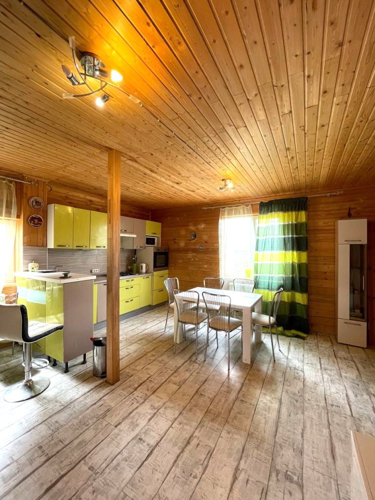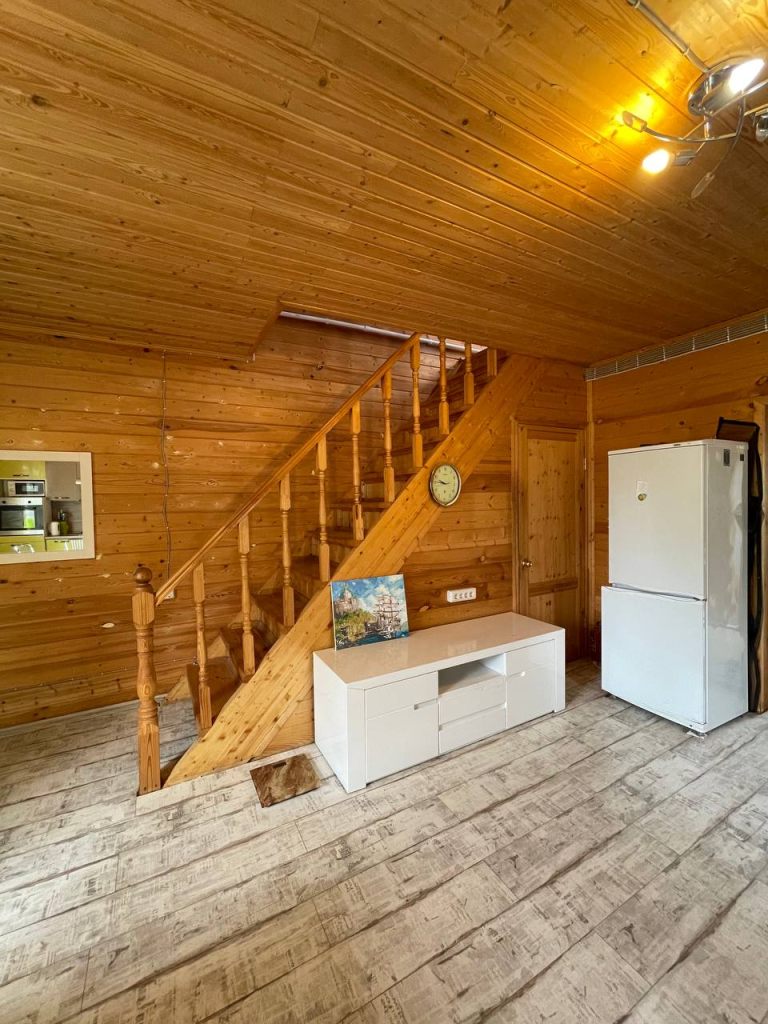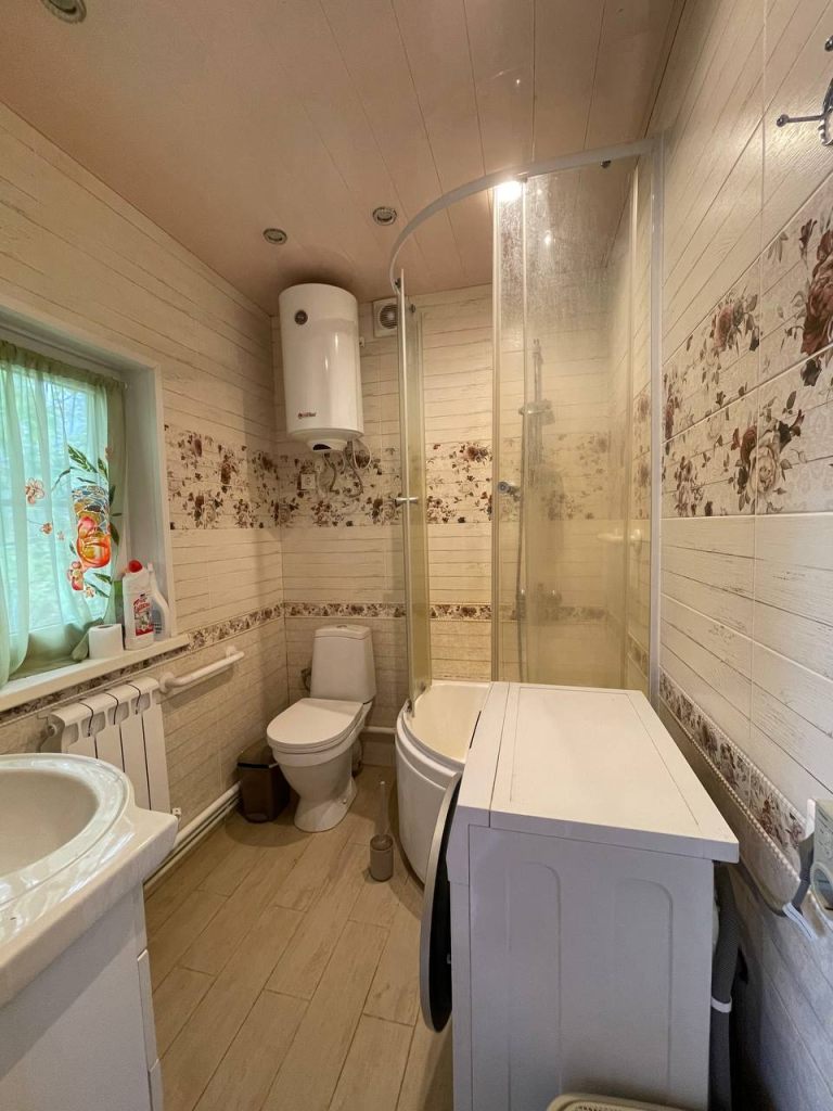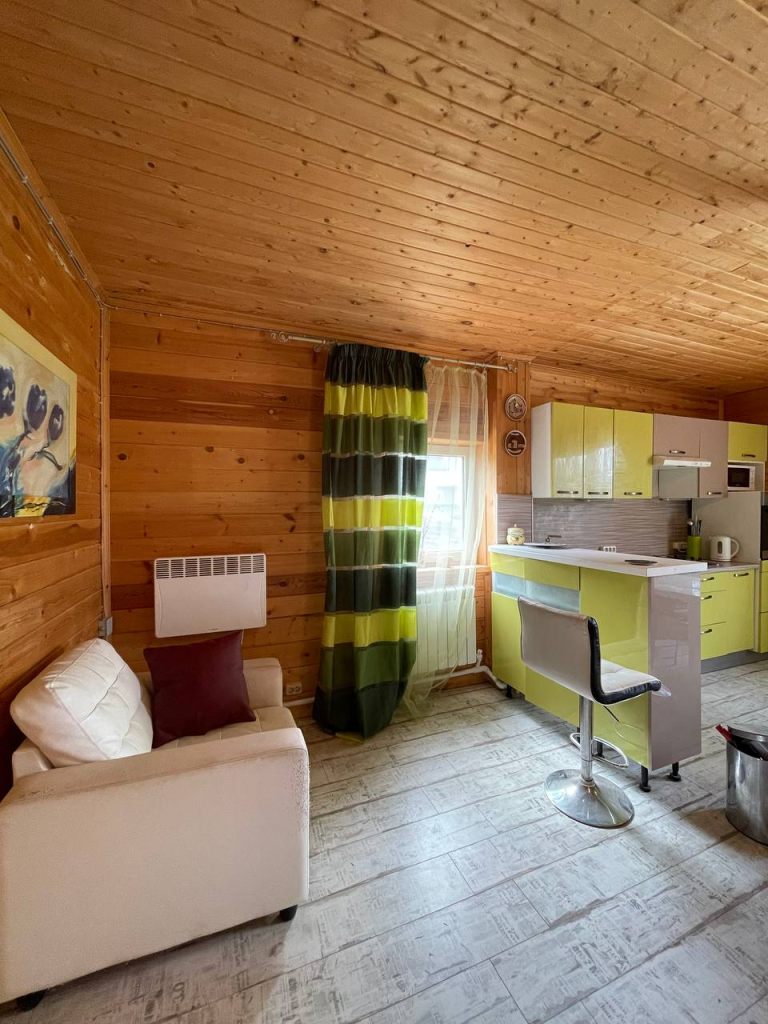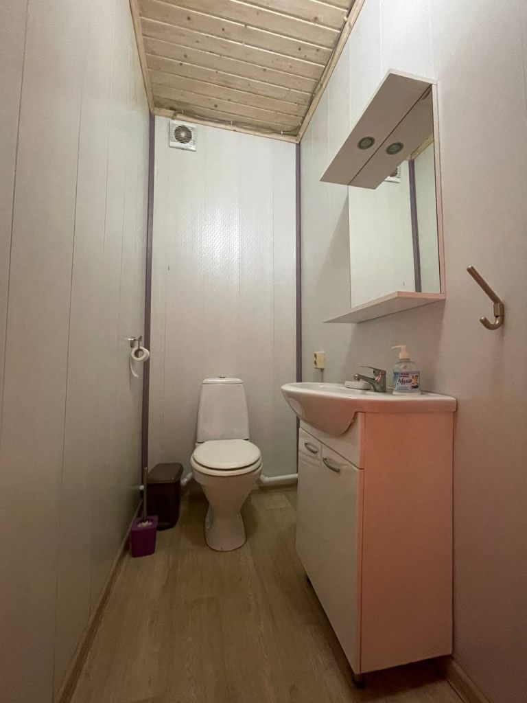 1 этаж - большая кухня/гостиная, совмещенный санузел с душевой кабиной, коридор