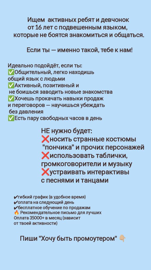 → пишите по ссылке WhatsApp "Хочу быть промоутером" https://wa.me/+79992270198