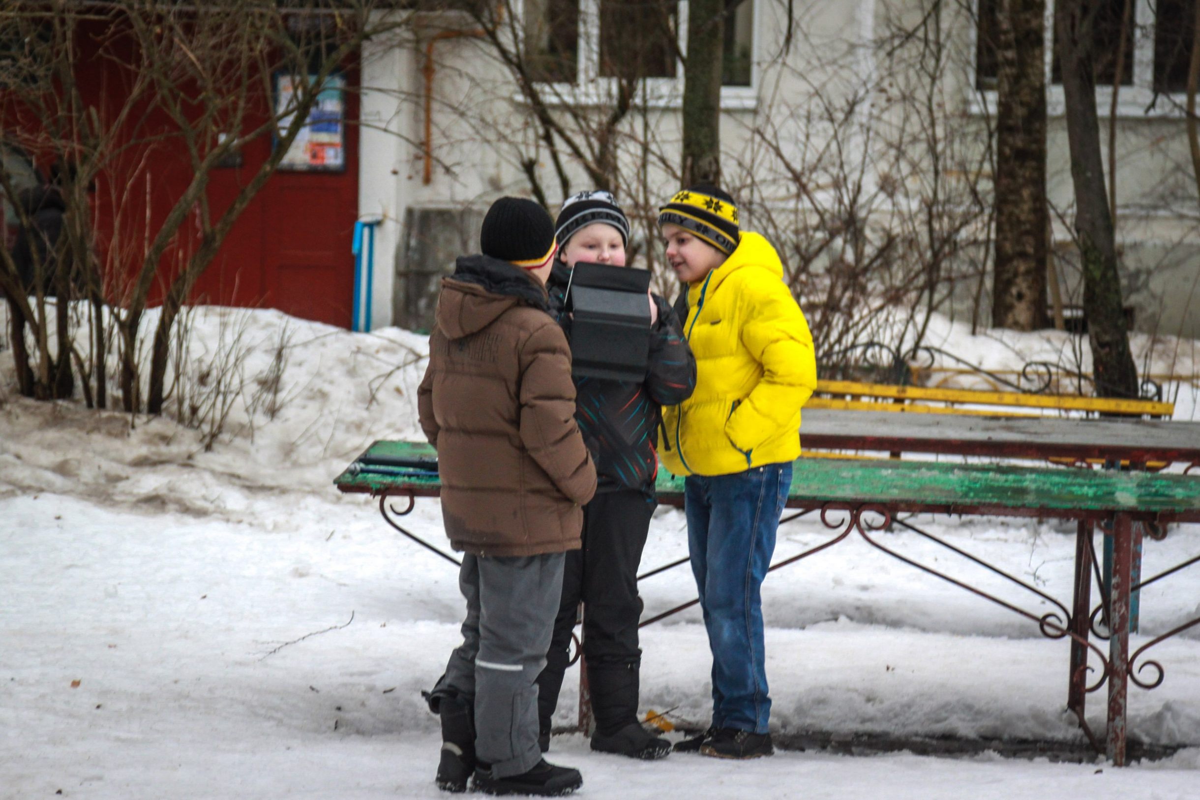 Вчера во дворе на Мира 7 : "Окей, гугл, во что поиграть на улице зимой?"