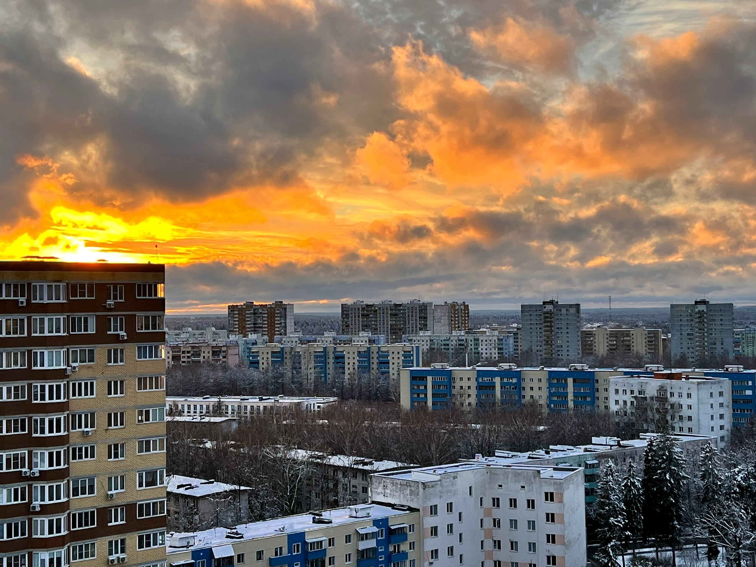 Закат над снежным городом