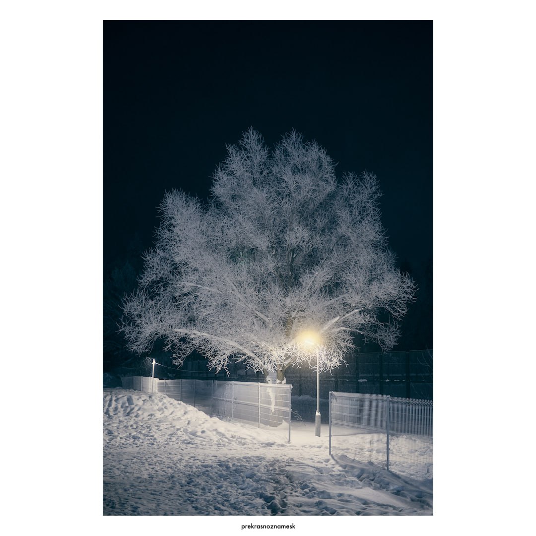 Дерево заиндевело Ночь | Зима 26 Велотрек