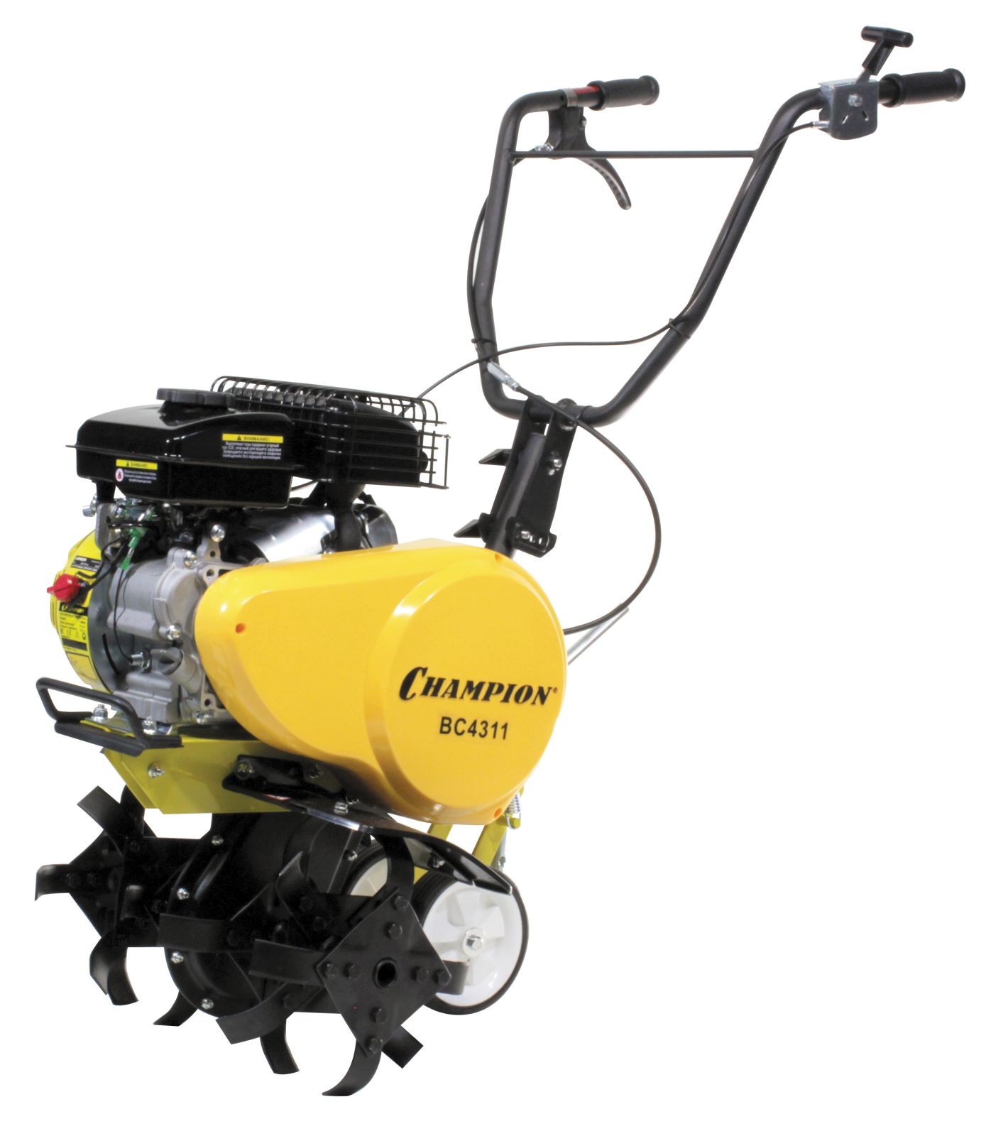 Бензиновый мотокультиватор Champion BC4311 предназначен для обработки участков земли до 10 соток. В данной модели мотокультиватора предусмотрен выбор ширины полосы обработки. Есть три варианта: 20 см, 35 см и 43 см. Аппарат оснащен антивибрационной рукояткой. Руль регулируется в одной плоскости, что позволяет оператору подстроить культиватор под себя. При желании, Вы можете приобрести навесное оборудование, для увеличения функций Champion BC4311. Мотокультиватор комплектуется воздушным фильтром автомобильного типа из гофрированной бумаги с дополнительным фильтром из поролона, что позволяет значительно увеличить ресурс двигателя. Проверка уровня масла осуществляется щупом.