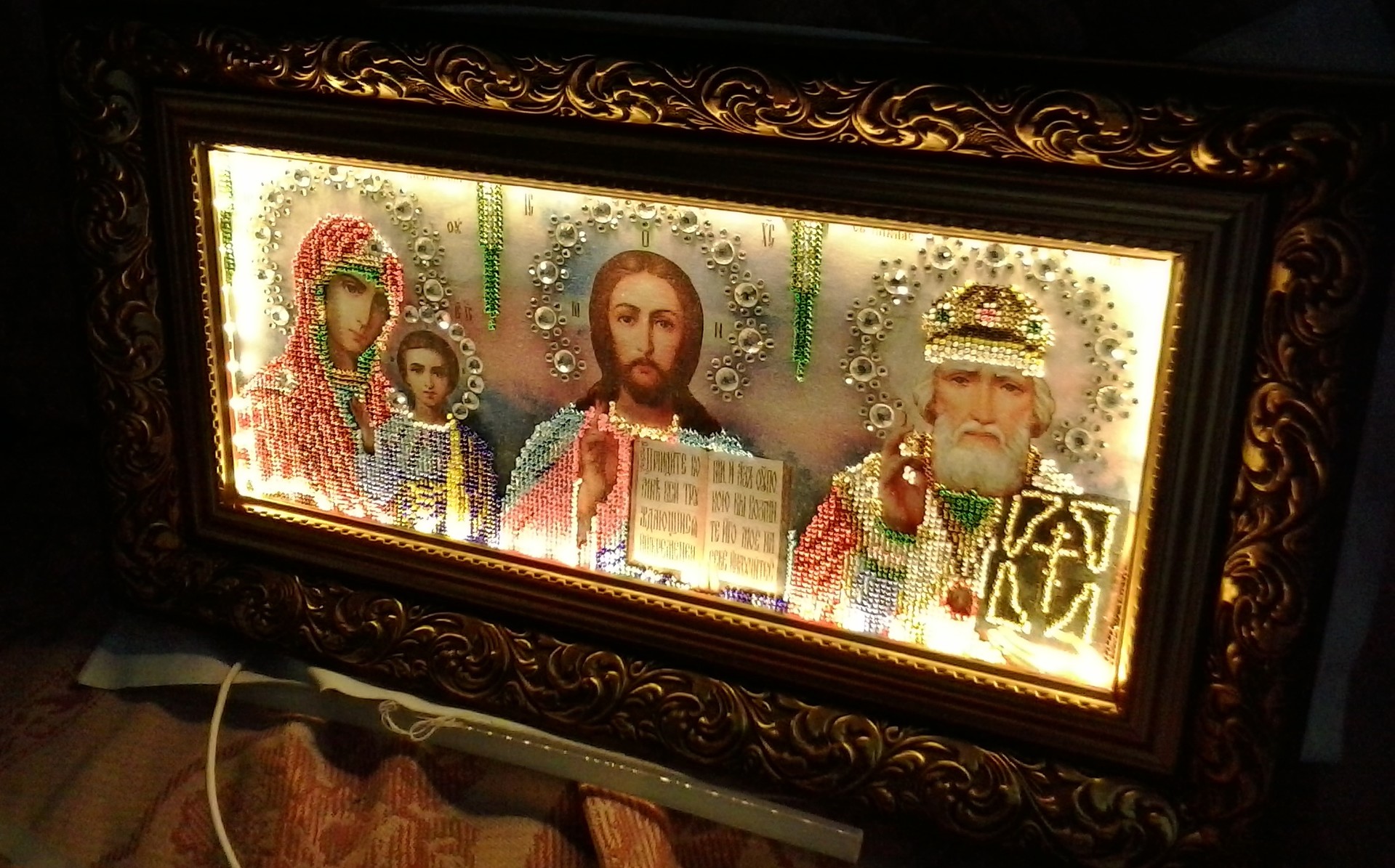 Икона вышитая бисером оформлена в багет 3075-C-1999 шириной 58 мм. с встроенной
