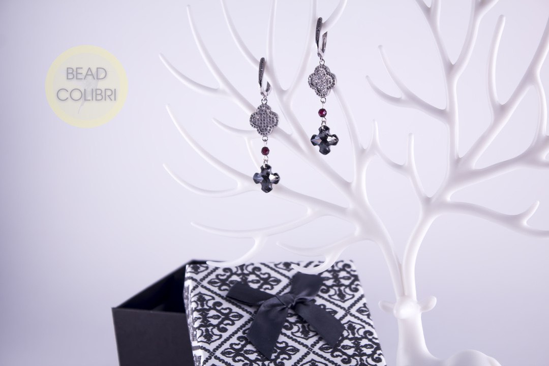 Серьги с черными вставками ♣ Swarovski и натуральными гранатами как нельзя лучше подойдут для торжественного