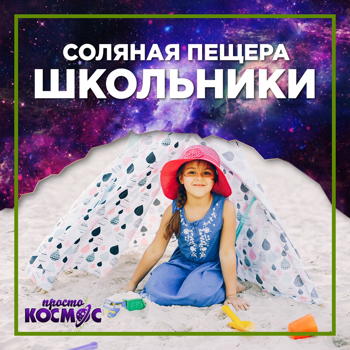 Соляная пещера Просто КОСМОС – это комплекс процедур по оздоровлению организма, основанный на пребывании в уникальном искусственно созданном микроклимате природных соляных пещер и шахт. Оздоровительный воздух соляной пещеры поможет Вам и Вашим детям: повысить иммунитет, укрепить здоровье, забыть о простуде, насморке и симптомах аллергии,уменьшить риск заболевания ОРВИ, даст возможность не пропускать детский сад, школу, поможет в профилактике ЛОР патологий, снизить медикаментозную нагрузку на детский организм, предупредить обострения хронических заболеваний, при кожных заболеваниях (экзема, дерматит, угревая сыпь и пр.), избавиться от переутомления и стресса, побороть аллергические заболевания. А также посещение соляной пещеры поможет курящим людям избавиться и реабилитироваться от табачной зависимости. Кислородные коктейли насытят организм кислородом и помогут избавиться от бессонницы, повысить работоспособность. Парение в кедровой бочке способствует улучшению состояния кожи, выведению шлаков и токсинов из организма. Фиш-пилинг поможет расслабиться и улучшить состояние кожи. Укрепляйте иммунитет вместе с нами!