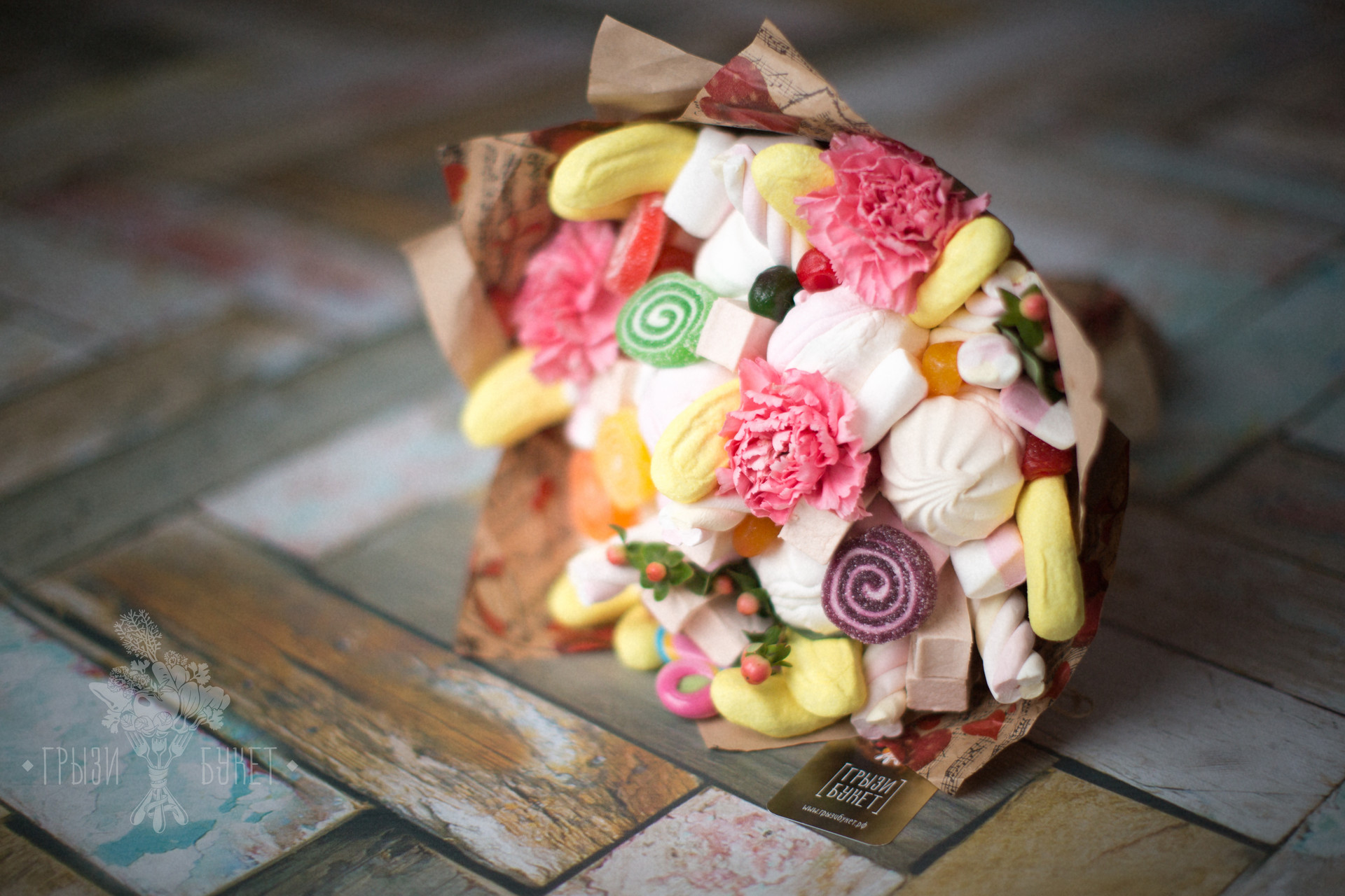 Оригинальный, мармеладный, сладкий и нежный букет из воздушной пастилы, маршмеллоу и зефира.
