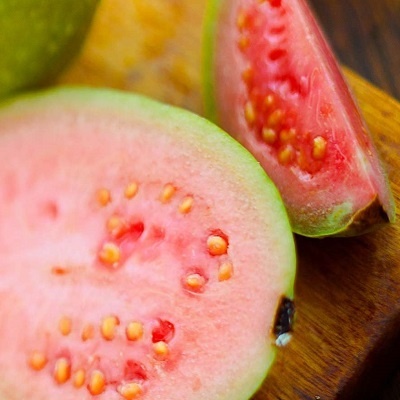 Гуава - королева фруктов, принадлежит к семейству миртов и эвкалиптов и растет в тропиках на небольших деревьях. Мягкая, сладкая и ароматная гуава, в зависимости от сорта может быть разного цвета, от желтого до розового и темно-красного Фрукт содержит некоторое количество крошечных съедобных семян в центре и ее можно кушать вместе с кожурой, как яблоко. Гуаву едят не только в сыром виде, ее добавляют в салаты. используют для приготовления вкусного джема, конфет и мороженого, сок гуавы отлично освежает и наполняет энергией.