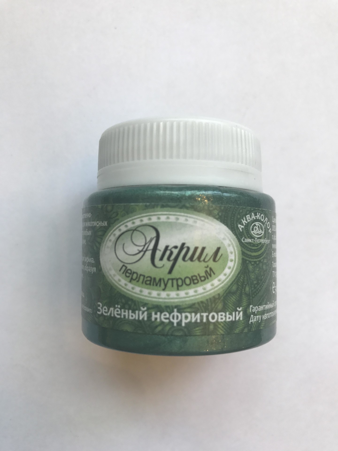 Краска акриловая перламутровая,художественная,цвет зелёный нефритовый,объем 50 мл., Луч