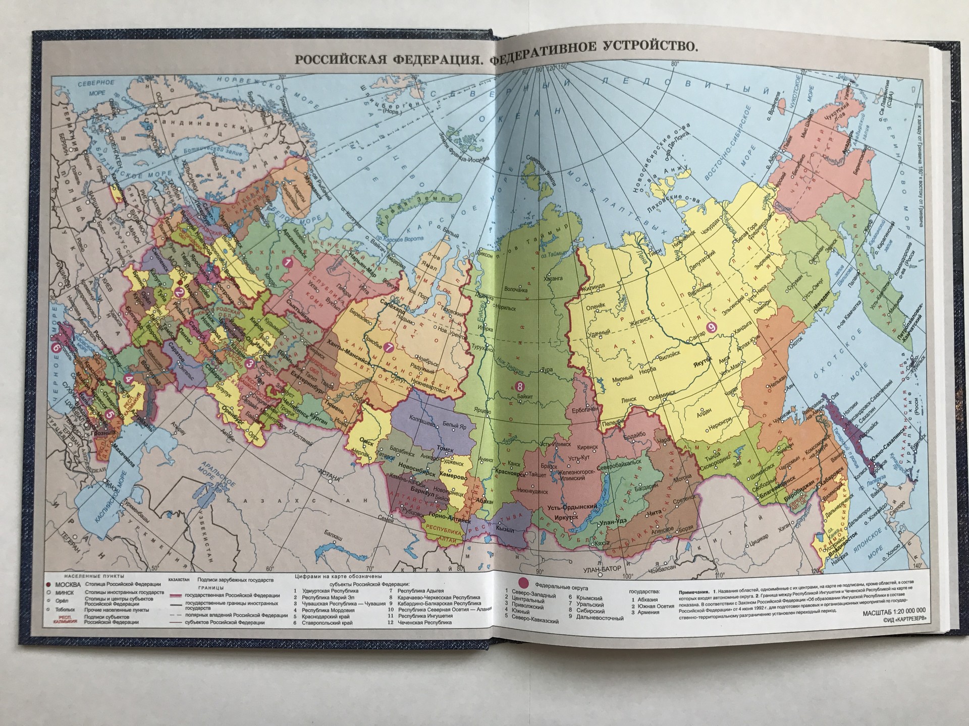 Дневник школьника с таблицей Менделеева на крайней странице и географической картой на первой