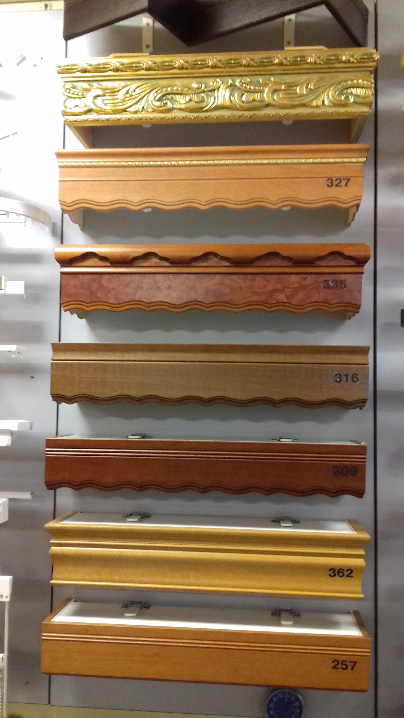 Деревянные багетные карнизы для штор изготавливаются исключительно по заказу из ценных пород древесины и покрываются тонировочным лаком. Возможно использование, как с пластиковыми шинами, так и с качественными алюминиевыми профильными карнизами и даже с подъемными карнизами. Доступные варианты крепления – потолок или стена. В коллекции деревянных багетов представлено около 50 различных вариантов, планки имеют различную форму, цвет и варианты отделки.